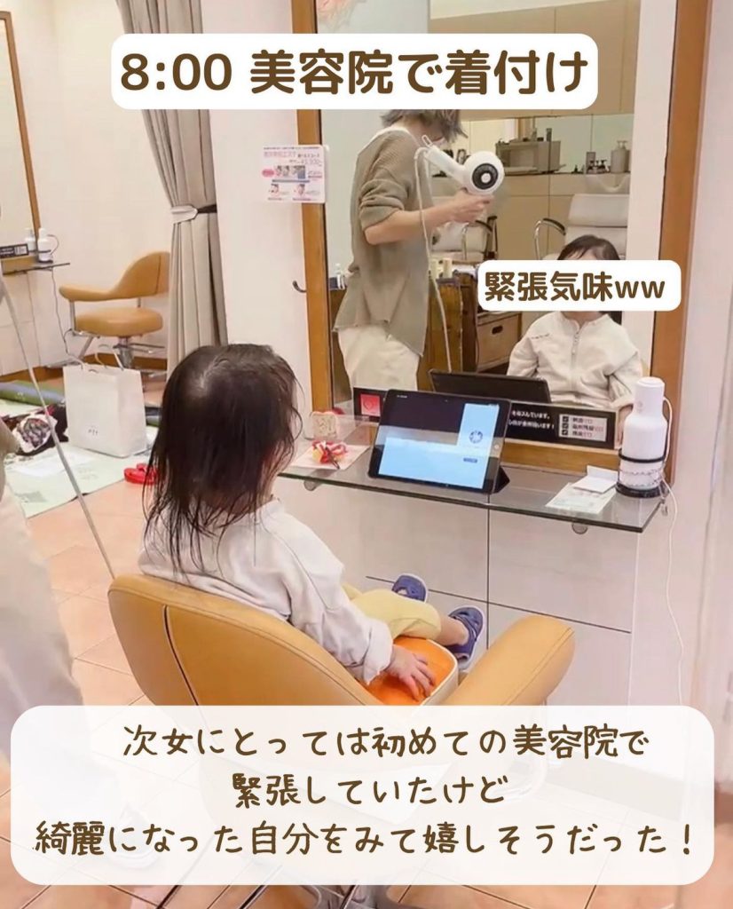 当日、初めての美容院で緊張気味でしたが、キレイになった自分を見てとても嬉しそうでした。