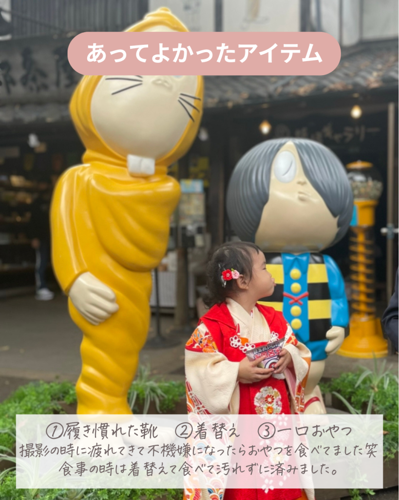 慣れない着物や雰囲気で、気疲れからくる機嫌の悪さでせっかくの出張撮影も台無しになりかねないので、気持ちを切り替えるためのおやつは必須アイテム