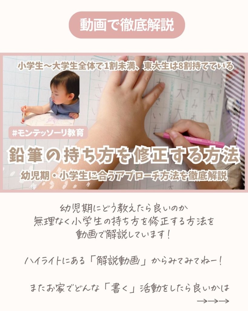 幼児期に正しい持ち方を教える方法、小学生になって持ち方を修正する方法、この二つの視点で具体的な活動や言葉かけを解説してきました。