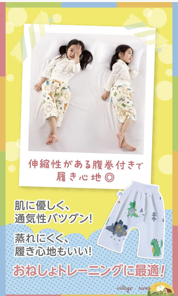 夜のオムツ外しが始まった時におすすめのズボンです。